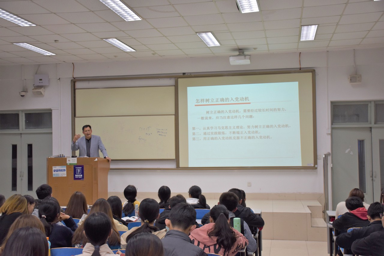 庄立臣为围绕“什么是政治”、“为什么会有政党”、“政党有哪些”、“中国共产党是什么样的政党”、“中国为什么是一党执政”五个基本问题进行授课,以入党的首要问题——入党动机作为切入点,列举一系列错误的入党动机作为反面教材,为同学们讲解应如何树立正确的入党动机,强调端正入党动机的重要性等。