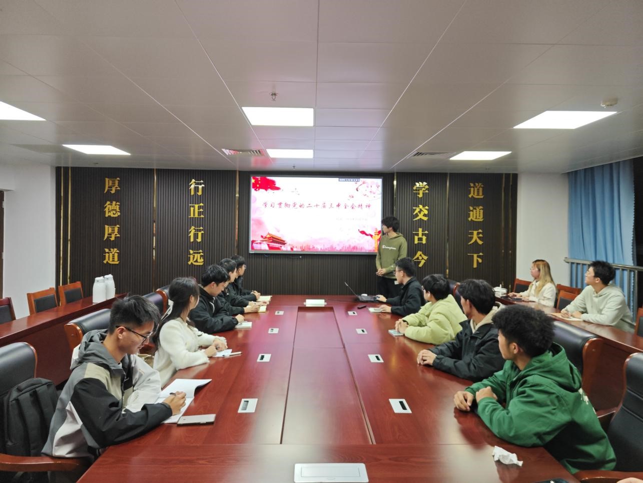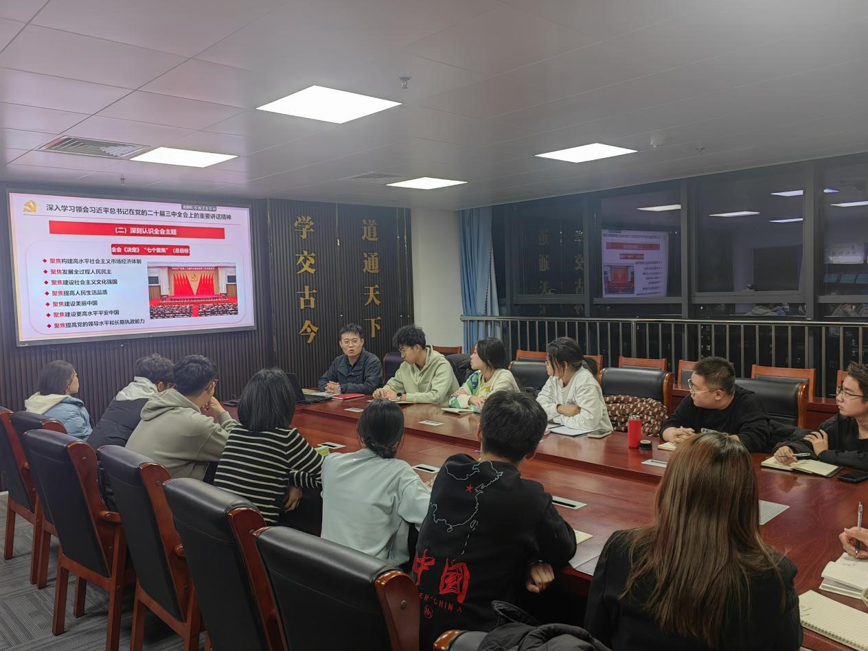 827日至95日,各年级、各学生组织通过开展年级大会、学生干部会、主题班会等形式,广泛宣传宣讲党的二十届三中全会精神。辅导员徐昊昊、任泳兆分别组织学生骨干开展专题学习,集体学习领悟《中共中央关于进一步全面深化改革、推进中国式现代化的决定》,并结合实际工作组织交流研讨,深化对全会精神的理解与认识。