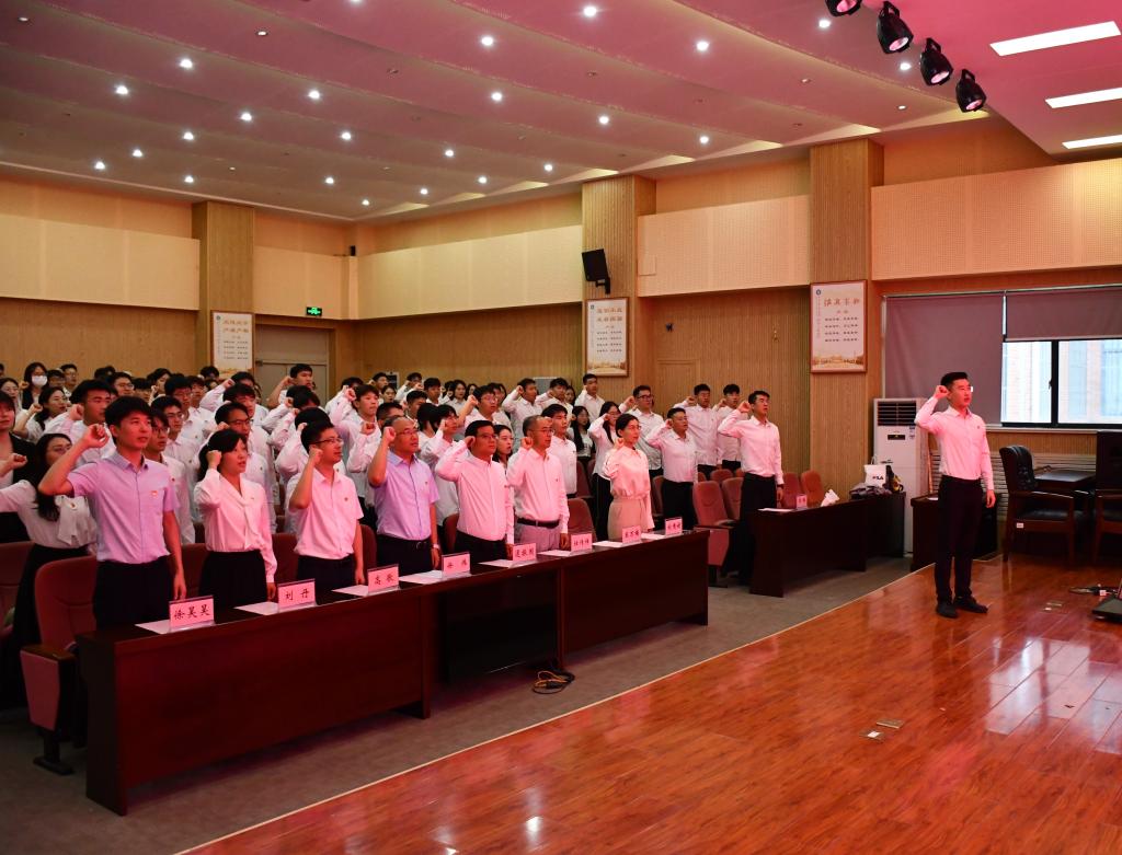 6月14日,必赢776net在J9-144报告厅隆重举行新党员入党宣誓暨老党员重温入党誓词大会。学院副院长徐伟、学术副院长逯振国、院长助理高歌,学工办主任、团委书记刘倩婧,教师党支部书记任传祥、刘丹,学生党支部书记王万楠、徐昊昊、郭铖以及全体学生党员参会,会议由刘倩婧主持。