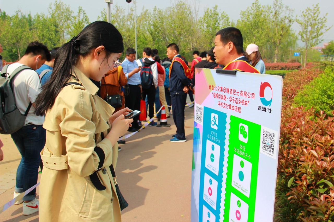 活动当天,服务队队员在学校A、C餐门口进行了五一假期出游攻略宣传活动。队员们通过分发宣传页的形式主要介绍了旅游攻略、购物指南和交通疑问三个方面的相关信息,详细内容也可以在通心相随志愿服务队的微信公众号平台点击查询。次日,服务队联合青岛公交集团隧道二队于隧道一始发站开展了五一假期乘车秩序维持活动。活动伊始,隧道组工作人员用展板的形式向乘客介绍了手机支付的乘车流程,具体方式是通过支付宝和微信扫码领取琴岛通电子卡,这样的乘车方式极大的便利了人们的出行,提高了乘客的乘车效率。活动中,乘车类型分为坐票和站票两种,在维护乘车秩序时,志愿者们及时答疑解惑,带领乘客有序安全乘车,获得了排队乘客的一致好评。