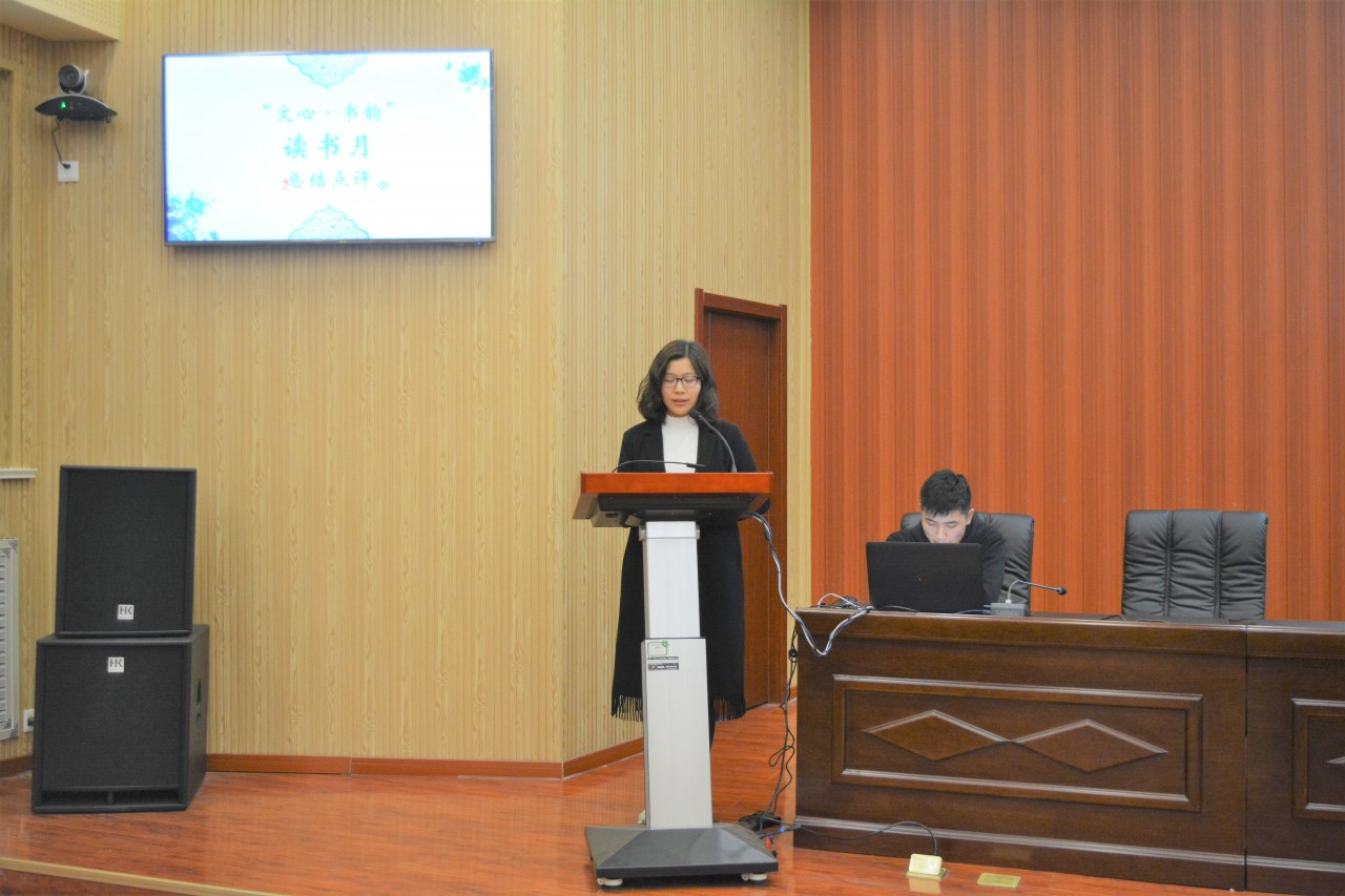 闭幕式上,首先学习部部长闫程举就活动展开情况作了细致深入的总结汇报,并就活动过程中出现的问题作了深刻反思。随后刘倩婧对活动进行了总结评论,她对同学们在本次活动中极高的参与度和参与热情表示高度赞扬,对活动现场舒适活跃的氛围深感欣慰,并号召同学们在日后的学习生活中继续“以书为友,与诗同行”。最后宣布了“感知书韵·声诵华章”朗读者活动的获奖名单,其中,刘伟伟获得季军,陈天奕获得亚军,宋志豪获得冠军。在线下读书分享会中,任泳兆、陈英奇、王莹、毛子滨获得饱学之士称号,王晓明、张震、陈天奕、孙昱平获得翰林学士称号。在诗词大会中,酒中仙队获得优秀奖,鹰击长空队获得三等奖,听雨队获得二等奖,全队获得一等奖。