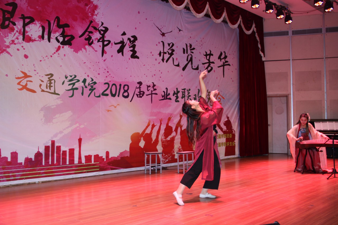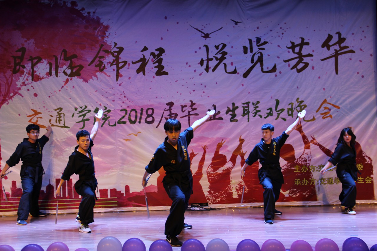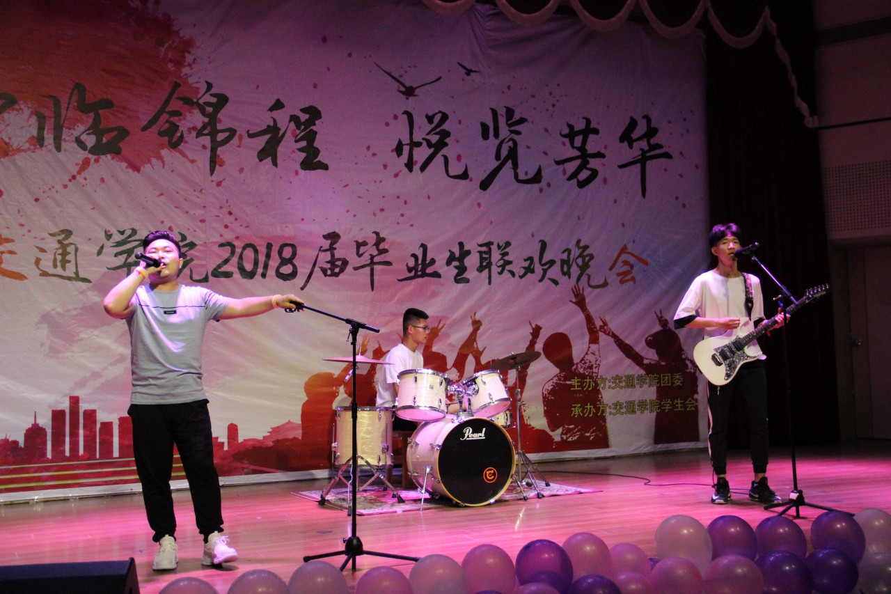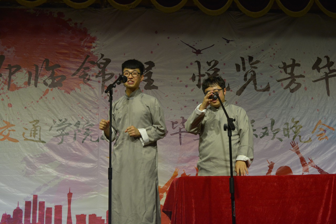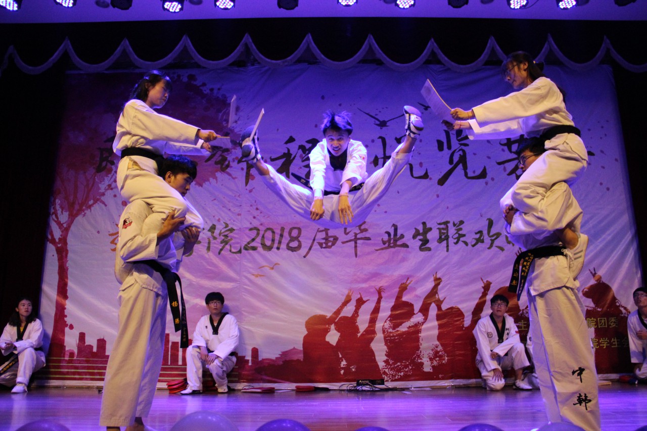 联欢会由曳步舞协会带来的一场富有节奏的舞蹈《曳未央》拉开序幕。随后,舞蹈、小品、相声、歌曲、双截棍、跆拳道等节目轮番上场,精彩绝伦。舞蹈《纸扇书生》表演者银冠束发,配以玉骨纸扇,少了富贵,多了一丝书生卷气,引发台下阵阵欢呼与赞叹;现代舞《we are young》俏皮可爱、活力满满。刚劲有力的双截棍表演《须尽欢》行云流水间将晚会推上一个高潮,跆拳道表演中空中二段踢,后空翻击破等高难度动作引得台下观众拍案叫好。研硕毕业生许彤然带来的歌曲《理想》道出了毕业生的心路历程,赞扬了他们不惧失败,勇于拼搏的精神。小品《职场秘史》以其生动明快的语言、丰富夸张的表演,逗得观众捧腹大笑,《毕业在即》演绎出大学纯真的友情,引起毕业生们强烈的情感共鸣,更添别离的深情与不舍。相声《哥俩好》诙谐幽默,妙语连珠,场下掌声连绵不绝。最后,晚会在歌曲联唱《骄傲的少年》悠扬温暖的旋律中落下了帷幕。