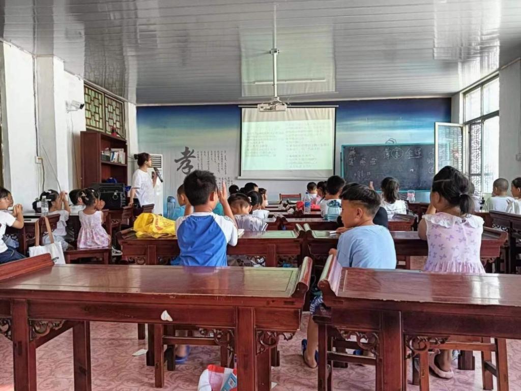 在课程设置方面,实践团队精心准备了多样化的教学内容,如家乡文化、法律知识普及、自然地理、传统文化。他们结合乡村实际,采用生动有趣的教学方式,让知识在孩子们心中生根发芽。支教老师们用耐心引导导学生们主动思考,鼓励他们发表自己的见解,激发了他们对学习的热情。