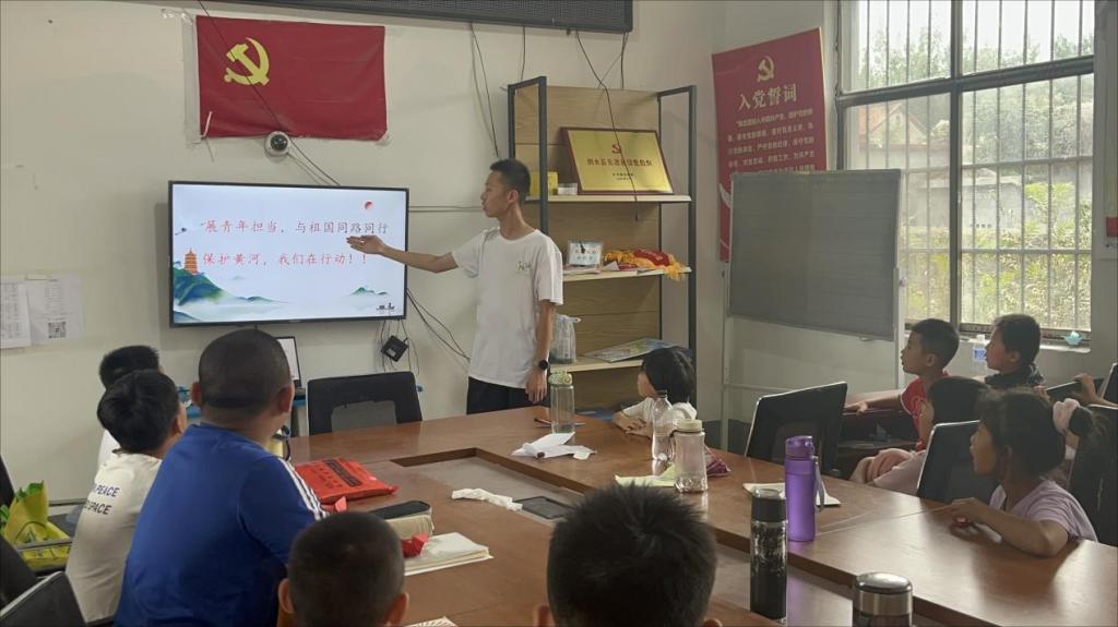 实践队的队员通过图片、视频和互动式讲解的方式向学生们进行了传承保护黄河文化的宣讲。他们生动形象地介绍黄河自然风光、黄河保护的重要性、黄河保护面临的挑战、如何保护黄河等知识,讲述了黄河对中国历史和民族精神的重要意义,激发了学生们对家乡文化的兴趣。