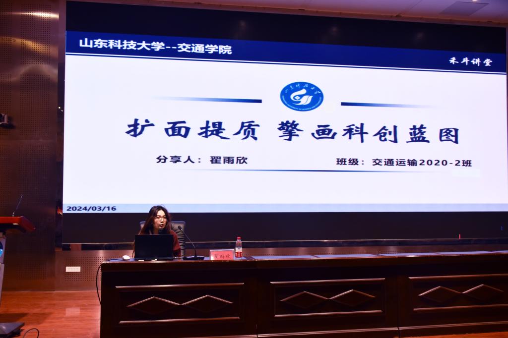 为进一步发挥榜样示范引领作用,培养学生创新意识,促进学院科技创新工作提质增效,3月16日,必赢776net于J9-144报告厅举办“禾斗讲堂”,由2023年度校“十大优秀学生”、国家奖学金获得者、交通运输2020-2班翟雨欣担任主讲人,2023级全体学生参加。