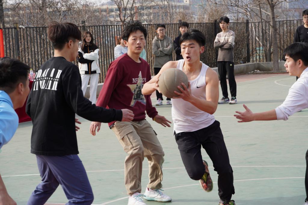 比赛现场,气氛热烈而紧张。各学生组织代表队摩拳擦掌、蓄势待发。随着裁判哨声响起,比赛正式拉开帷幕。球员们迅速进入状态,灵活跑位、精准传球、果断投篮……大家竭尽全力,展现出了不同的战术风格,大艺团代表队注重团队配合,通过默契的传球和跑位打乱对手的防守,体育部代表队则凭借出色的个人能力,突破、投篮,连续得分。现场观众不断为场上选手加油呐喊、热烈鼓掌,将比赛氛围一次次点燃。