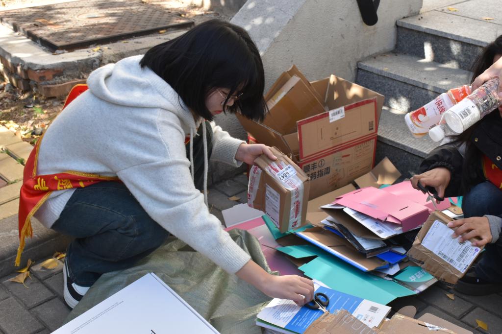 活动当天,志愿者们精神饱满,手拿编织袋,准时在宿舍楼下集合。活动开展过程忙碌而有序,志愿者们各司其职,分工明确。负责收集的人员穿梭于各宿舍间,敲门礼貌询问,用行动呼吁同学们共同加入保护环境的行列;负责整理的人员坚守在宿舍楼下,将大家放在指定位置的废品进行分类、收拾、装袋。报名参与活动的学生积极响应号召,抱着提前整理的废纸箱与瓶瓶罐罐,到达回收区域有序排队。一个个干瘪的编织袋很快被闲置物品填满,它们将被统一运往废品回收站,并在经过加工处理后重焕新生,成为书本纸张等工业成品的原料。参与活动的同学们纷纷表示,本次废品回收不仅帮助自己处理了废旧物品,还为他们提供了为环保事业贡献力量的机会,也使得校园环境更加整洁、宜人。