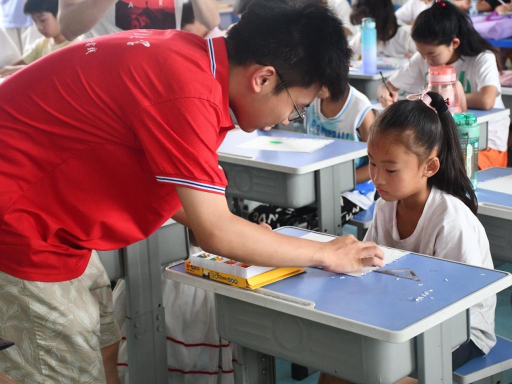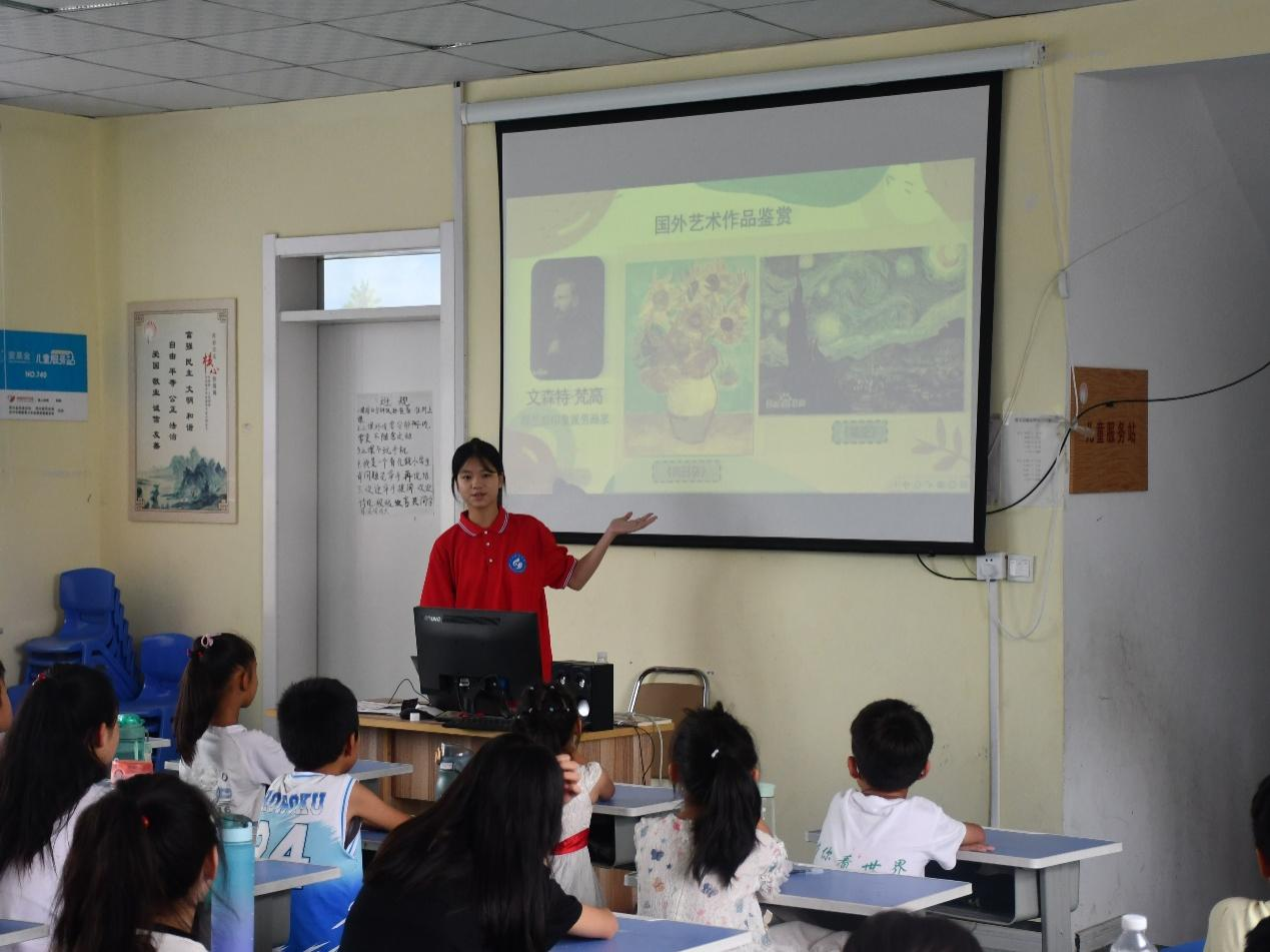志愿者们精心设计的课程涵盖了地理绘画、传统文化、美术艺术及青少年自护等内容。地理绘画课上,大学生志愿者胡慎铎带领学生们绘制自己喜欢的城市或景观,激发了他们的创造力和对地理知识的兴趣。传统文化课由志愿者薛雨辰讲授,通过生动的视频和有趣的讲解,让学生们深入了解了孔子生平和儒家文化,培养了学生们对传统文化的兴趣和思考能力。美术艺术课在志愿者阮瞳曦的带领下,学生们开启了一场跨越时空的艺术之旅,欣赏了中外著名艺术作品,了解了艺术创作的艰辛和坚持的重要性。青少年自护课程由志愿者逄栩讲授,重点讲解了防烫伤的应对策略和急救步骤,提升了学生们的自我保护意识和技能。