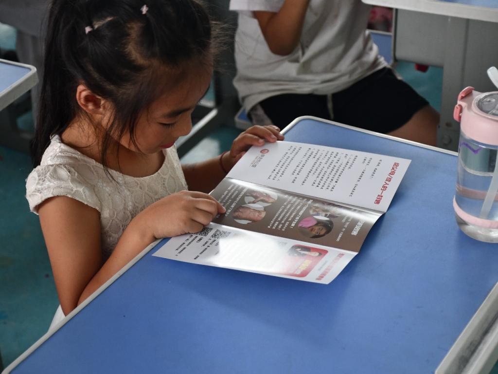 孩童在学习防烫伤宣传手册(摄影:江克东)