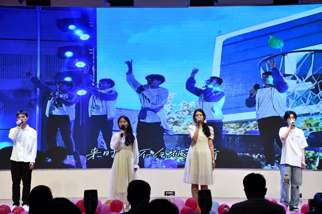中场的中国风走秀,演员们青春灵动的姿态与中华传统服饰的魅力相互映衬,再一次吸引了全场人员的目光。第二篇章“青春杨帆,逐梦起航”,张文鑫和李乐涛带来的《如果爱忘了》,升华了晚会的情感,诠释了甜蜜与浪漫。摇滚风格的《极恶都市》让在场的观众跟着节奏一同打起节拍。合唱《裹着心的光》和歌曲《如愿》展现了毕业生们对于未来的美好憧憬。第三篇章“青葱岁月,你我共行”,歌曲《突然好想你》在毕业生孙剑钢的深情动人的演唱下带动了全场人员的大合唱。朗诵《四年一梦》复刻了毕业生大学四年的心理历程,并表达了他们对未来的美好期望。由学院各老师美好的毕业寄语组成的视频让观众们再一次感受到了必赢776net大家庭的温暖与感动。最后,刘倩婧老师和学生们以一曲《凤凰花开的路口》借凤凰花开向明天与未来致以最美好的祝愿。