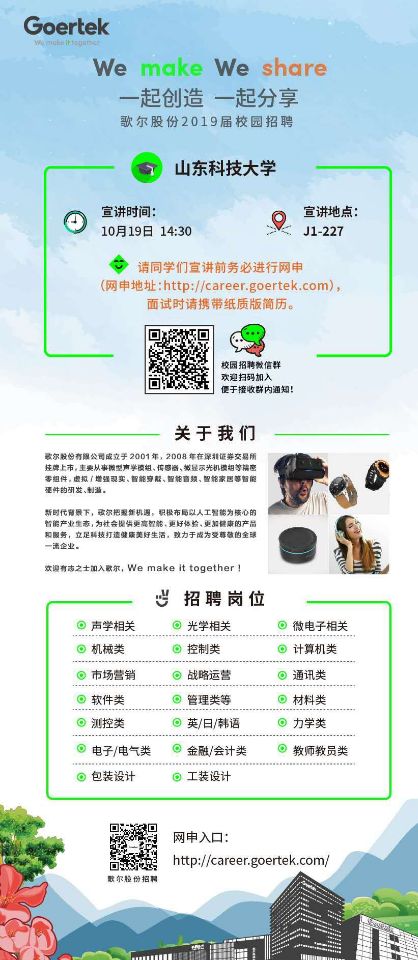 【招聘信息十二】歌尔股份2019届校园招聘