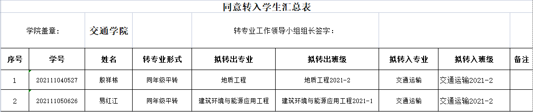 根据学校《关于2022年本科生转专业工作的通知》、《山东科技大学学生学籍管理实施细则》(山科大教字〔2017〕13 号)、《山东科技大学本科学生转专业管理办法》(山科大发〔2021〕34 号)和《必赢776net2021级本科生转专业工作方案》等有关文件规定,学院对申请转入我院交通运输专业2名学生完成审核、综合面试工作,现对同意拟转入学生名单予以公示,公示期为三个工作日。
