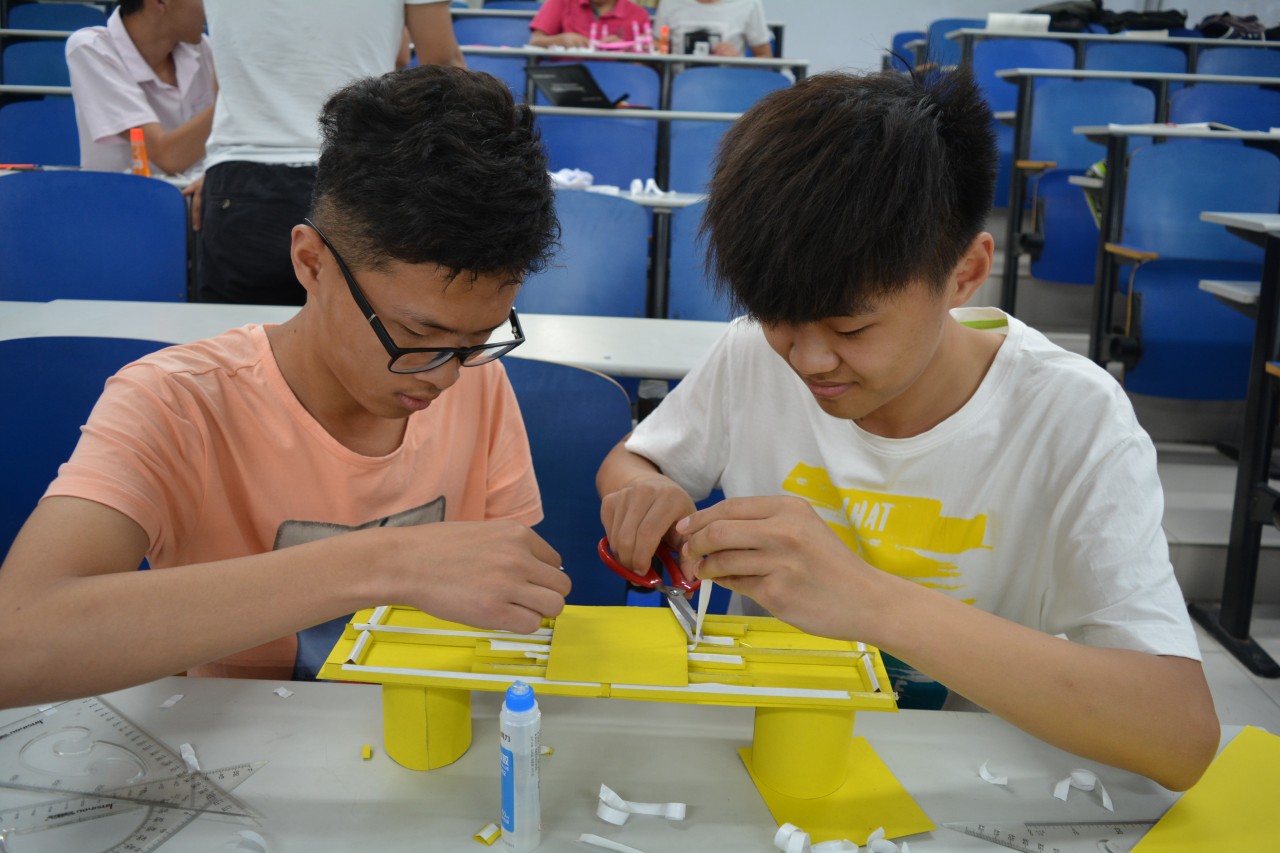 比赛分为纸桥制作与承重测量两个环节。首先,主持人介绍了本次活动的比赛规则及注意事项。随后,同学们开始限时一小时的制作。在制作期间,队员们分工明确,认真细致,组内成员之间充分交流、激烈讨论,最终确定统一方案,动手制作,在规定时间内12支队伍完成了桥梁制作。