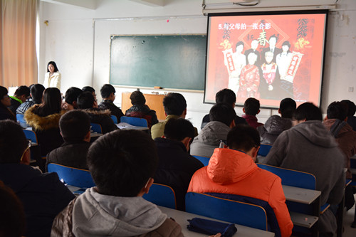 针对当下感情淡漠的社会现象,班会以“感恩父母·感悟亲情”为主题。班会以测绘学院孙金香老师《感恩——开学第一课》班会视频开篇,从侧面让同学们了解父母无私的爱,“感恩父母,感悟亲情”,李老师用平和的语言将其中的深意向同学们娓娓道来。“感恩父母,心动不如行动”,为此,李老师向同学们布置了“寒假5·1”亲情作业,即“和父母算一笔账”、“同父母聊一次天”、“送父母一件礼物”、“给父母做一天饭”、“跟父母合一张影”,并将实践的成果通过微博、朋友圈等平台展示、分享。接下来,李老师对放假及离校安排,期末考试相关事宜,假期安全问题等问题进行强调。“心存感恩,志存高远”,最后,李老师对每位同学及其家人送上诚挚的新年祝福。