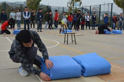 为弘扬宿舍文化,加强宿舍文明建设,11月15号,必赢776net在C区高地网球场举办叠军被大赛。必赢776net自律会主任王亚浩、副主任侯强,学生会副主席高苏、刘少龙等出席比赛并担任评委,学院15级部分宿舍参加了比赛。