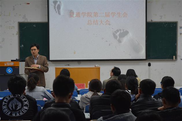 最后,庄兴华老师作总结发言。他对学生会上半年的工作给予肯定,认为活动形式有新意,精彩十足,极大提高了同学们的能力。此外,他强调学生活动要结合专业特色,提高质量,创造品牌,不断提高各年级同学的参与度。依托“交通文化节”的举办,吸引更多的同学参与到活动中来,丰富自己的校园生活,提高自身的能力。