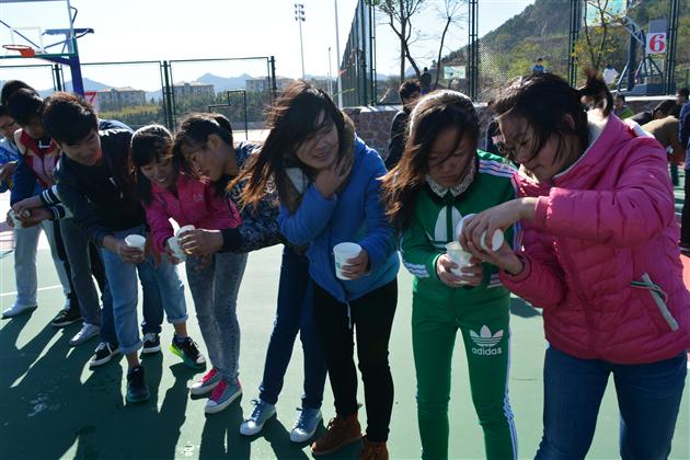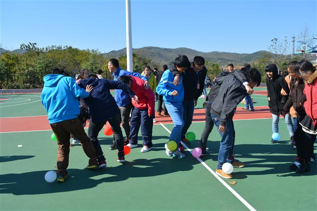 本次活动以“团结、合作、交流、创新”为主题,分为团队组建及展示,搭桥过河,龙王降雨,踩气球四个环节。全体参赛成员随机分为六组,合作完成各项任务。团队组建及展示环节要求各队在规定的时间内设计出队名、口号、队歌,并一一进行展示,选手们奇思妙想,创意百出,将滑板鞋、日出、小苹果等作为设计元素,向大家展现了自己团队的风采。随后开始的游戏环节充分体现了团队合作的重要性。搭桥过河环节中,用报纸做的“桥”在脚下传递,大家一边紧张有序地传递报纸,一边防止双脚踩地,在欢笑声中体悟协作的意义。龙王降雨和踩气球环节中,队员们动作机敏、密切配合,气球的爆破声和大家的欢笑声接连不断,将现场氛围推向高潮。