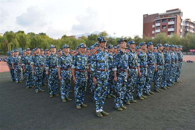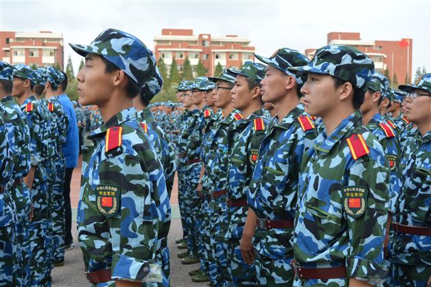 明媚的阳光撒向每一个角落,嘹亮的口号划过湛蓝的天空,校园里刮起一阵“迷彩风”,绿荫场上的14级新生们成了一道亮丽的风景线。有力的口号此起彼伏,他们告别假期的慵懒,体验军训生活,磨练军人意志;欢快的歌声直冲云霄,展现了青年的活力,昭示青春热情,开启全新征程。