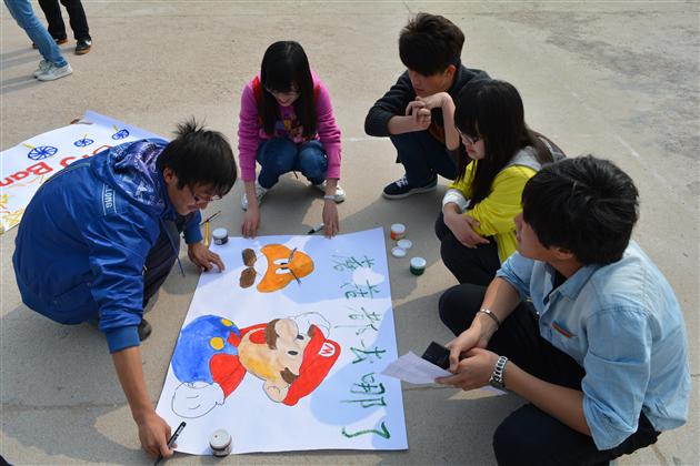 活动分为团队组建及展示、搭桥过河、十人九足、抢踩好运四个环节,选手们分成六组开启了素拓之旅。团队组建及展示环节中,各团队在规定时间内设计出队名、口号、队歌、队徽以及个人昵称,并一一进行展示。选手们发挥创意,将马里奥、飞翔的蝴蝶、毛主席头像等作为设计元素,既有对童年的回忆,又有对社会热点的反思。随后的游戏环节更是体现了团队合作的必要性和重要性。搭桥过河环节中,一张张报纸做的“桥”在脚下传递,成员们一边手忙脚乱地传递报纸,一边防止双脚踩地,错误不断,欢笑不断;十人九足和抢踩好运环节同样笑语连连,在“一二一”的口号和气球的爆破声中,队员间的默契程度和团队的协调能力都得到了显著提高。