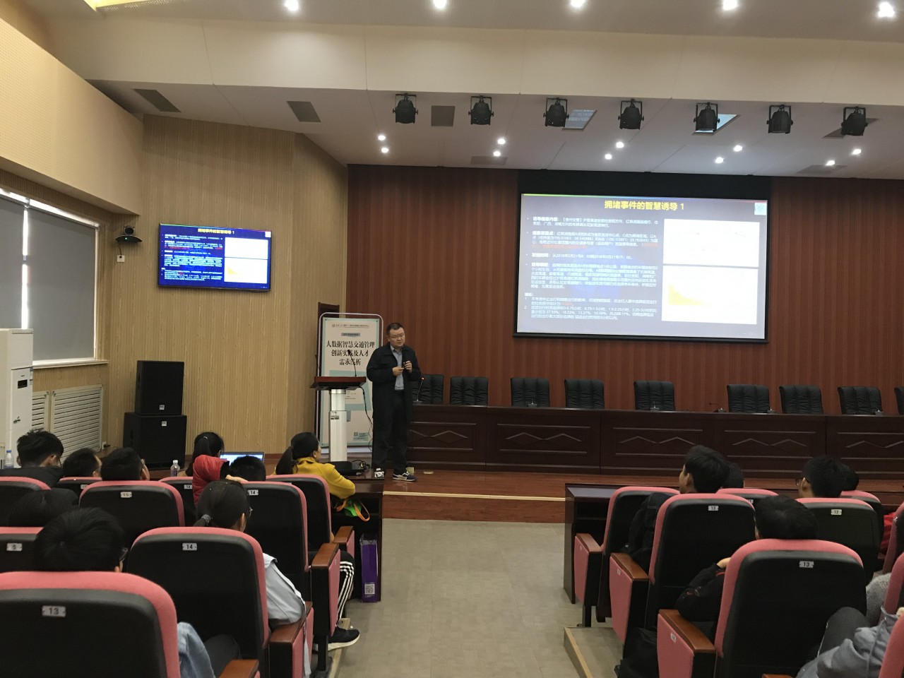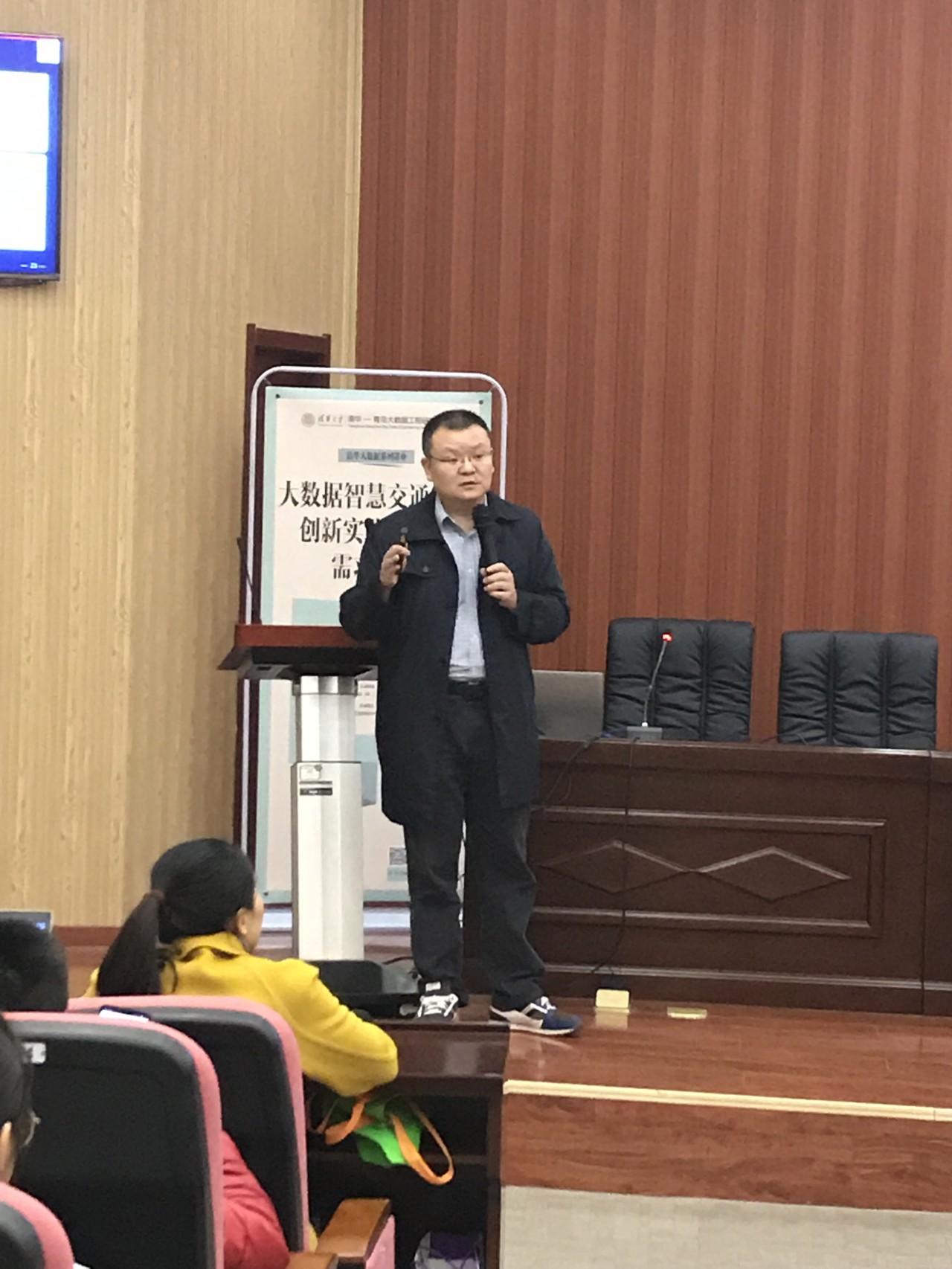 本次报告会上,胡庆勇为师生介绍了大数据如何在交通领域的应用场景发挥其作用,同时介绍了数据科学研究院在交通大数据领域的研究工作以及未来大数据在交通领域的发展方向。他提出了跨界大数据智慧融合交通管理系统的研究方法,解决了交通态势认知及风险系统中深度融合多维数据的高速公路风险预警方法、跨界数据深度融合解决公路拥堵的管控系统以及内容规则库管理系统及其编码方法等关键技术,实现了交通大数据的跨界融合、多维数据源的整合处理及应用,覆盖了交通安全风险事前,事中,事后完整闭环流程的前置性主动交通态势感知及安全管理。