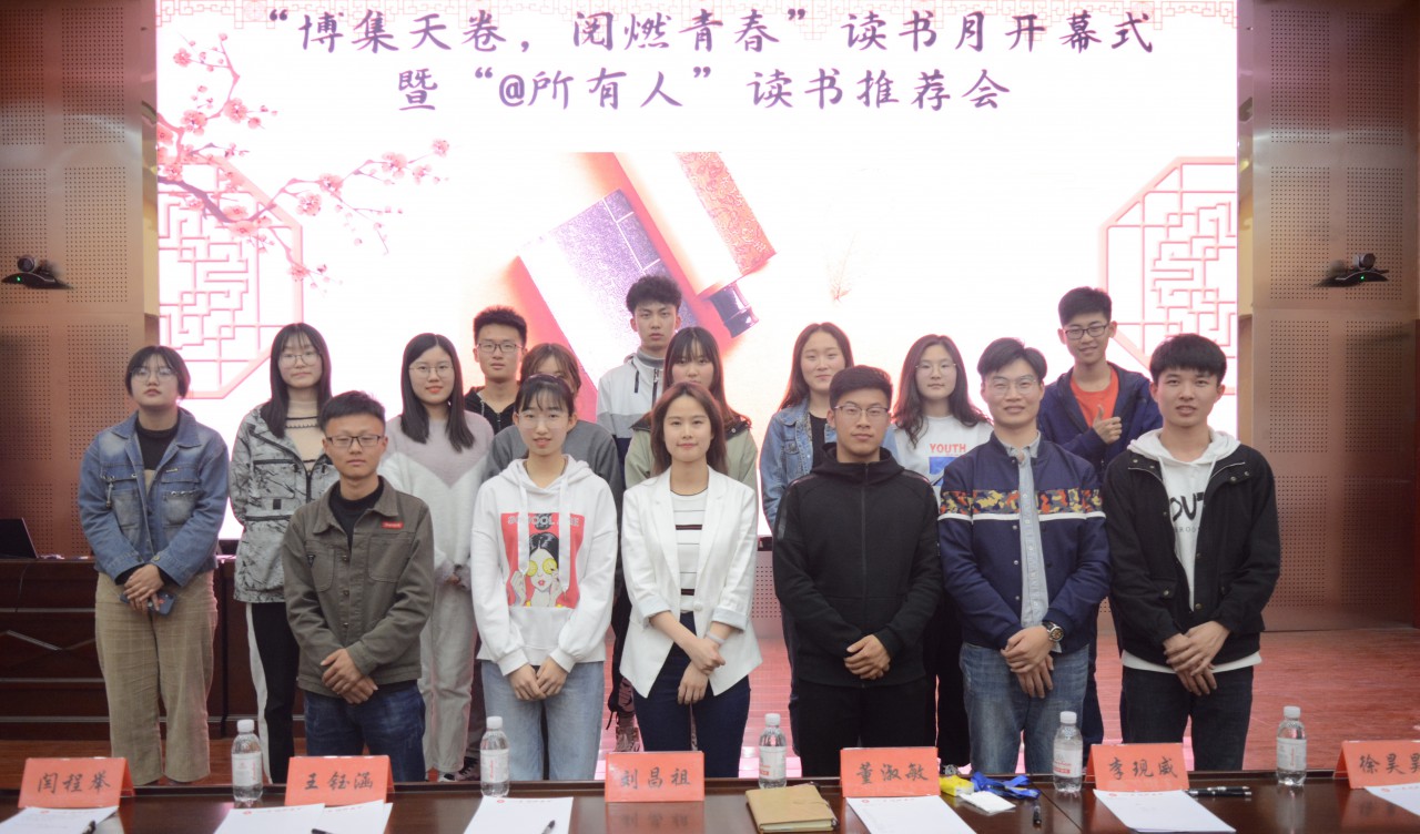 初春好时节,正是读书时。3月31日,必赢776net第五届“博集天卷,阅燃青春”读书月系列活动开幕式暨“@所有人”好书推荐会于J9-144报告厅成功举办。必赢776net团委老师董淑敏,学生会主席刘昌祖,副主席王钰涵、徐昊昊、闫程举、李现威出席了本次开幕式。