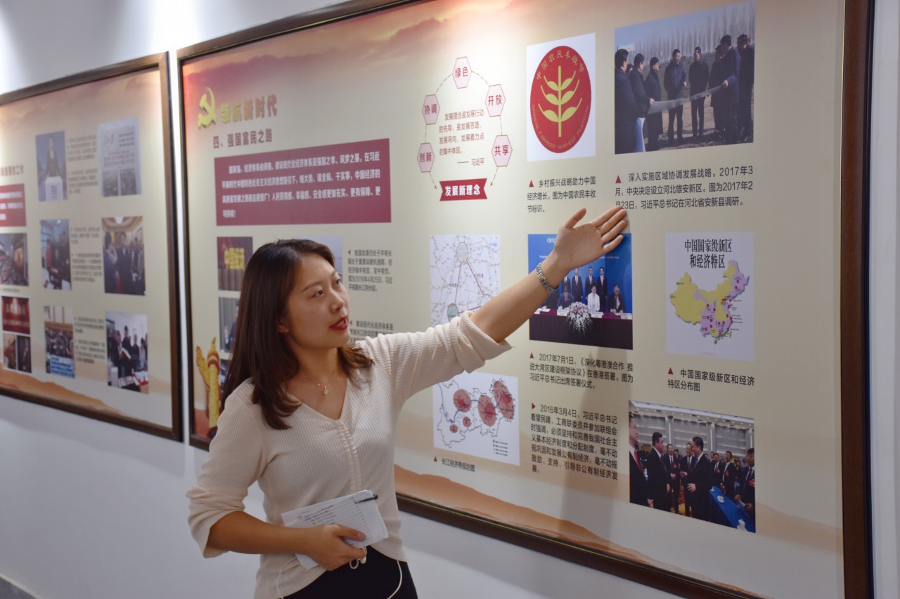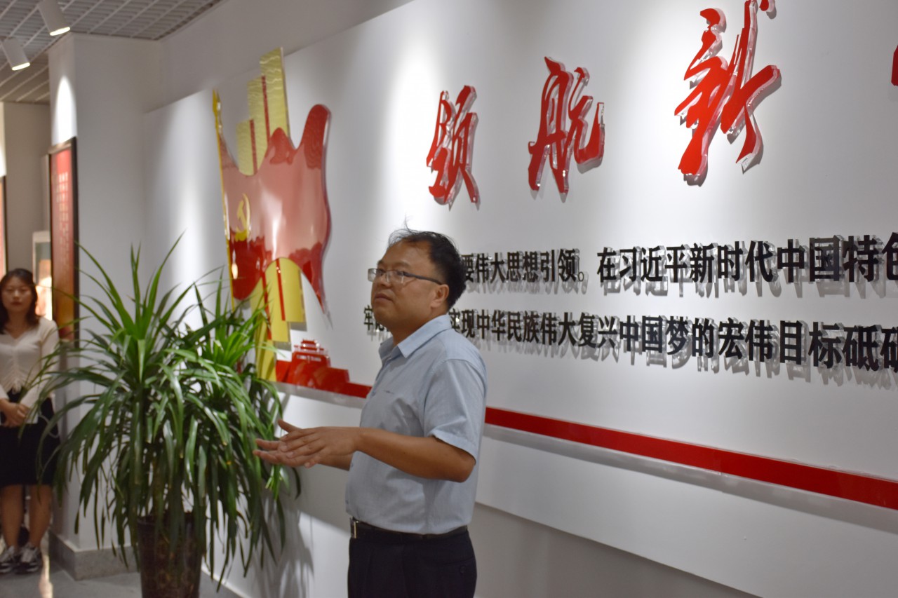 紧接着,讲解员邱琳珈分别从“启航新时代、共筑中国梦、旗帜鲜明讲政治、强国富民之路、意识形态工作是党的一项极端重要的工作、坚定文化自信、共建共享美好生活、绿水青山就是金山银山、构建人类命运共同体、奏响强军号角、打铁必须自身硬”十一个单元,向大家详细讲解了十八大以习近平同志为核心的党中央带领我国取得的伟大成就,一幅幅真实的画面生动展现了在中国共产党的坚强领导下,中华民族从“富起来到强起来”的伟大历史性飞跃。在场的党员跟随着讲解员的引导,认真聆听,用心感悟,深受鼓舞。