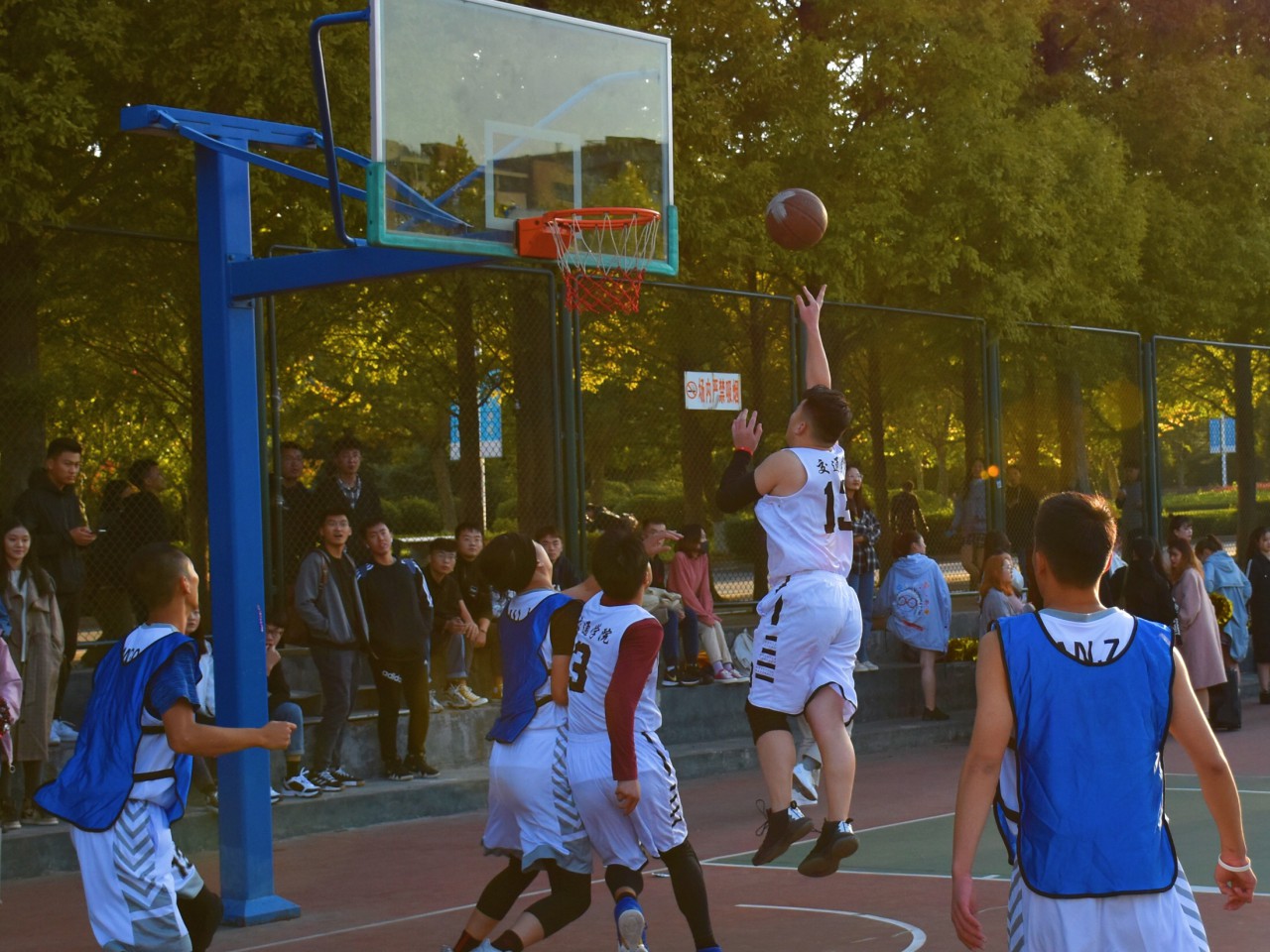 次日,与文法学院的对抗中,双方交相突破上篮,上半场战况十分焦灼。随后,我院篮球队迅速调整,采取包夹换防战术,多无球跑位,限制对方进攻核心,积极争夺篮板,现场表现渐入佳境,连连得分。在我院队员的猛烈攻势下,文法学院球员渐渐体力不支,攻防两端传球失误不断。我院队员紧紧抓住对手失误间隙,进一步将比分差距拉大。最终我院篮球队以35:29的比分大获全胜,提前出线。
