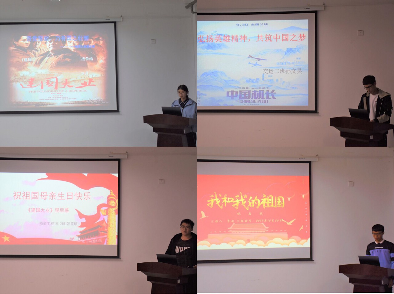 2019级交工一班的周民强分享了观看《我和我的祖国》的感悟。他通过对电影各个篇章的解读,表述自己的理解体会。如《白昼流星》篇章寓意“希望”,影片中的李叔坚信扶贫靠内生动力才可能成功,而“白昼流星”就是兄弟二人希望的种子,灌输了积极的人生信仰,将两个脱缰野马一样的青年,引回到人生正轨,可歌可泣!由此,他勉励自己:要坚定理想信念,主动培养责任与担当意识,紧跟时代步伐,实现自身价值。