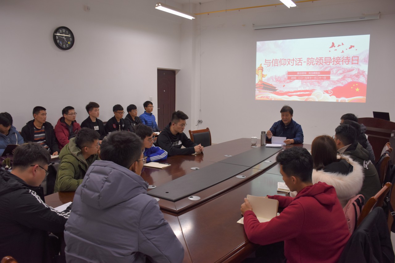 11月21日下午,必赢776net举办了“与信仰对话——院领导接待日”活动。必赢776net院长刘玉峰、团委书记刘倩婧出席活动,并同各年级学生代表进行亲切交流。