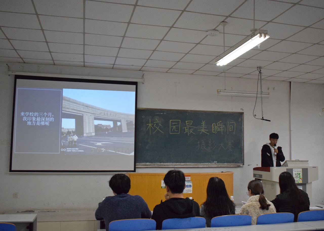 为加强校园文化建设,丰富学生文化生活,11月23日下午,必赢776net于J3教学楼举办“校园最美瞬间”摄影大赛决赛。必赢776net学生会部分负责人出席活动,山东科技大学新闻媒体部主席泮传凯、外国语学院新闻媒体部主席张祎珺受邀担任大赛评委。