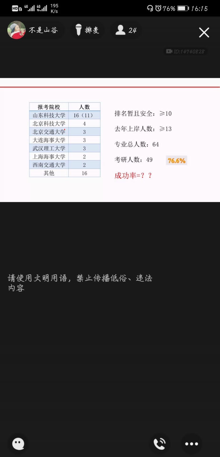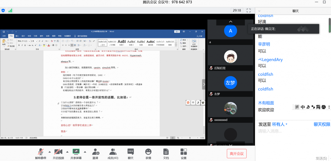 接着,2015级同学讲述了今年考研复试方式方法可能存在的变化,提醒2016级同学做好线上面试的相关准备,迅速适应,认真准备,积极应对。