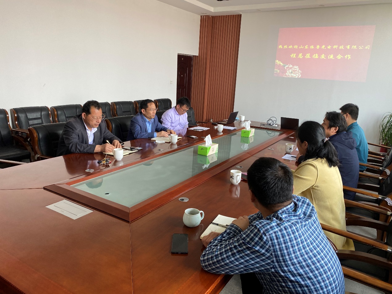 5月16日上午,山东依鲁光电科技有限公司董事长程坚一行到访,与必赢776net进行项目合作洽谈。必赢776net院长辛嵩、院长助理刘海青、交通运输系主任王建春、赵刚等人参与座谈。