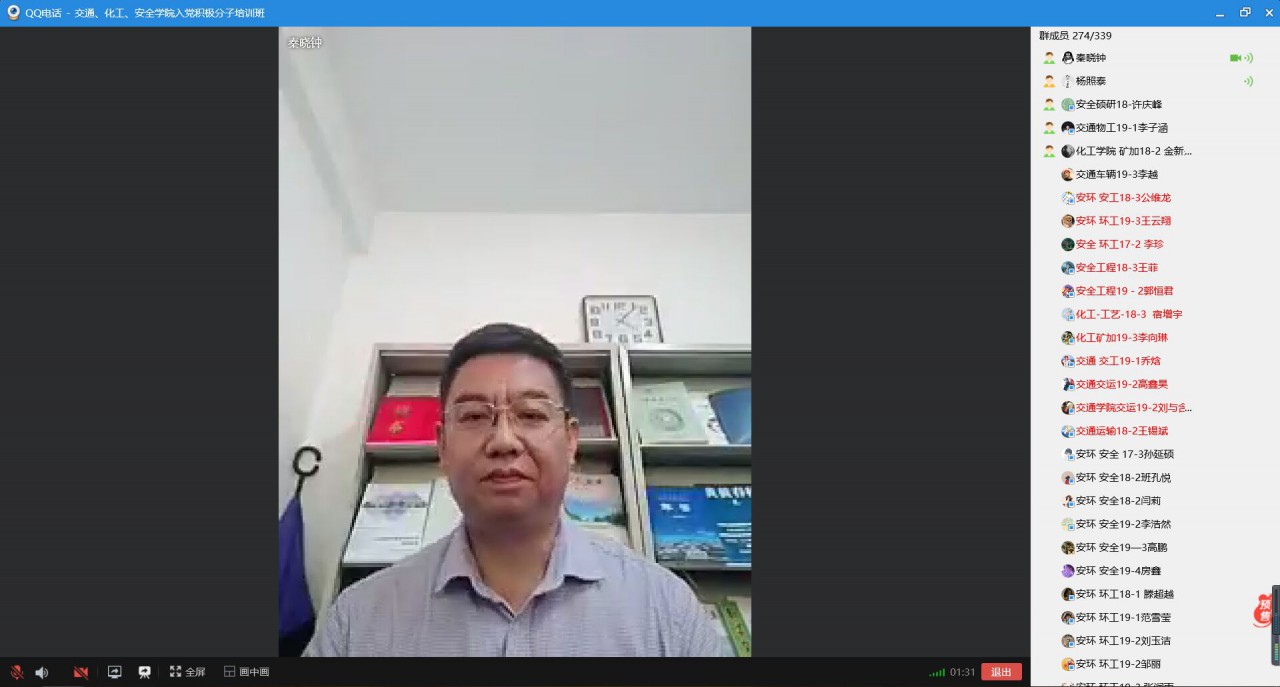6月1日,校党委宣传部副部长秦晓钟为必赢776net、化工学院及安全学院入党积极分子进行线上授课。本次授课主题为“中国共产党的诞生和发展”。