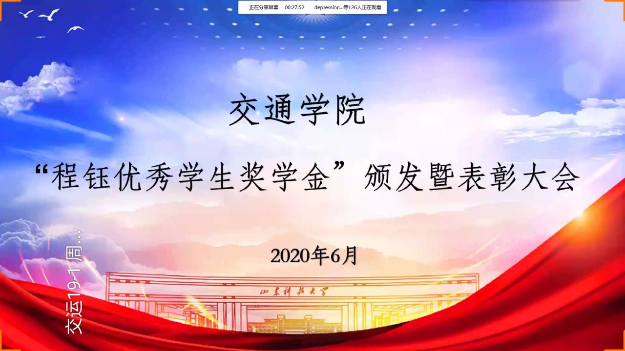 随后,党委书记苗汝昌宣读了对荣获2019-2020学年关于程钰优秀学生奖学金的同学的表彰决定。对获得奖学金的硕研17级李洋、交通工程 2016-1班刘素芳、交通工程2016-1班张颖、交通工程2016-2班林鑫、交通运输2016-2班郭文斌、物流工程2016-1班林安阁、交通工程2017-1班吕行、交通运输2017-1班孙昱平、车辆工程2017-3班王超、车辆工程2018-3班侯国阳以上10名同学予以通报表彰。
