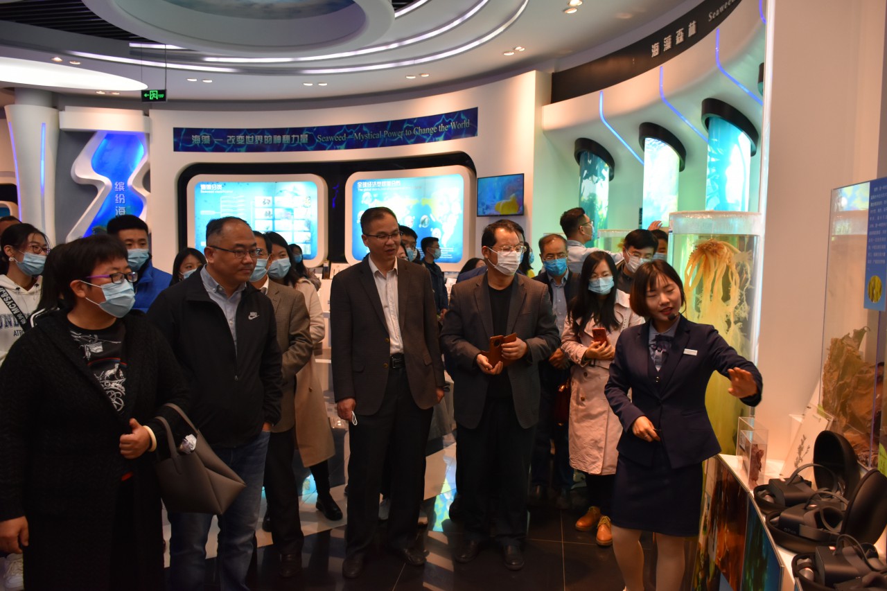 来到青岛古镇口军民融合创新区展览馆,一行人员实地听取讲解,认真观看纪录片,详细了解了我市军民融合创新示范区建设发展情况。走进海洋生物文化馆和海藻生物产业馆,面对众多的标本模型、文字解说、科技成果,大家纷纷驻足,认真学习海藻生物产学研合作与创新以及在现代生活中海藻作为生物肥料、医用肥料、食用材料等方面的研发成果、相关先进经验和做法,进一步加深了对军民融合创新发展成果的了解,加强了对海藻起源、海藻种类的全面认识。