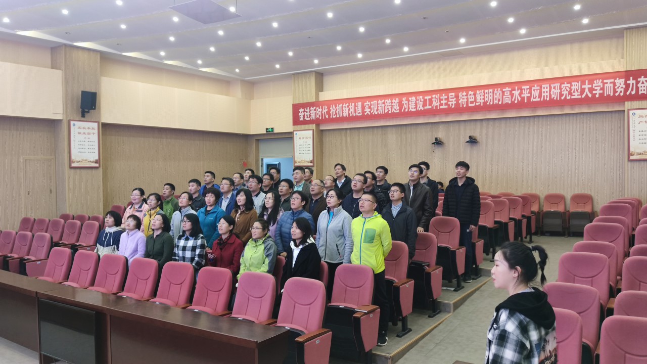 会后,全体教职工合唱山东科技大学校歌,尽显必赢776net积极向上的精神风貌。