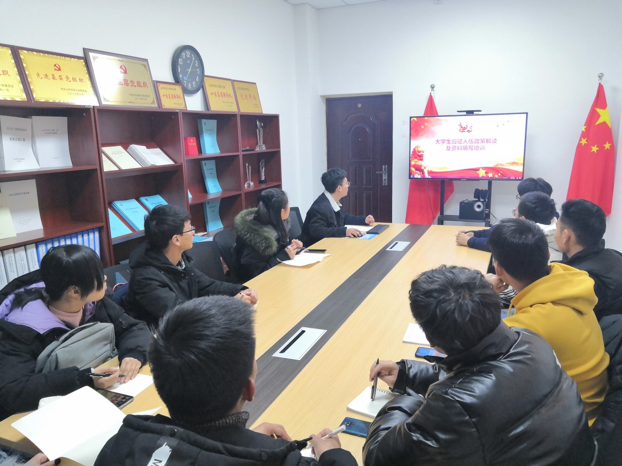 12月30日,必赢776net大学生应征入伍政策解读及资料填写培训会在J9-117成功举行。此次会议由任泳兆担任主讲,必赢776net有应征入伍意向的同学参加了此次会议。