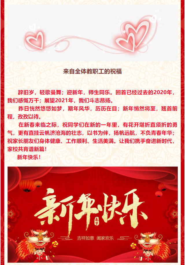 美篇《你好,2021》向家长和学生介绍了学院2020年取得的一系列成绩以及全体教职工送上诚挚的新年祝福。