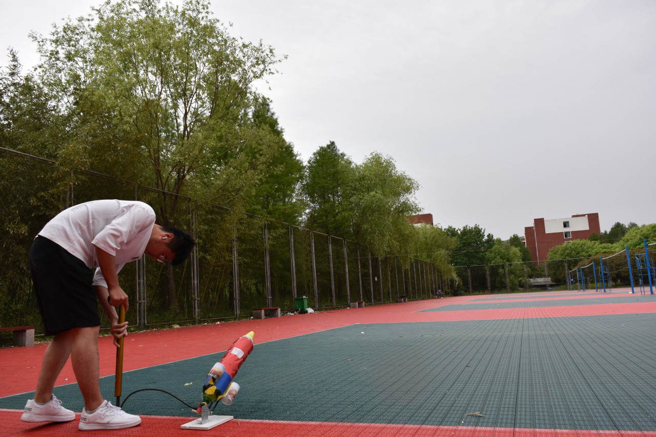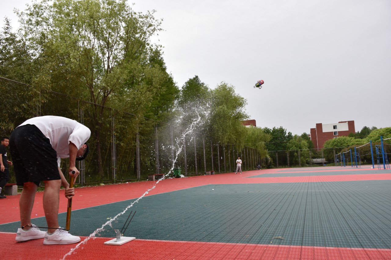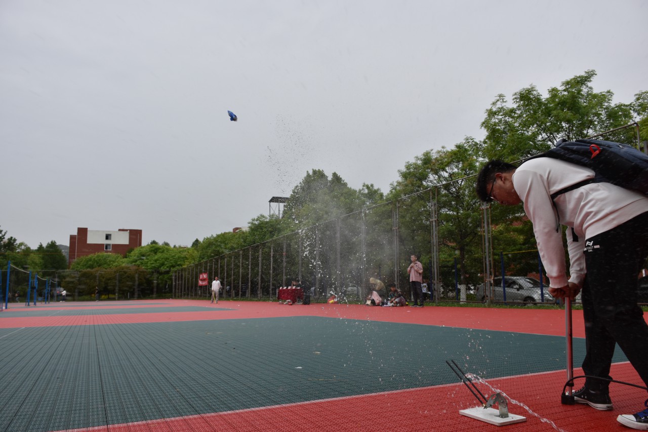 为了培养大学生设计、制造和创新能力,提升大学生的科技素养,5月23日,必赢776net于C区排球场举办“一箭起航”水火箭大赛。