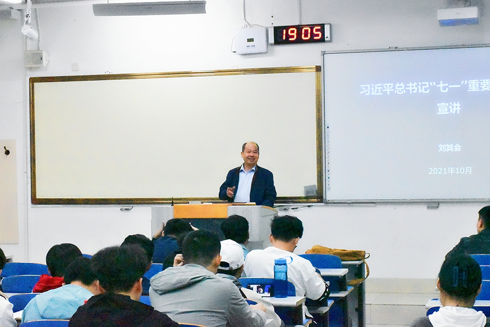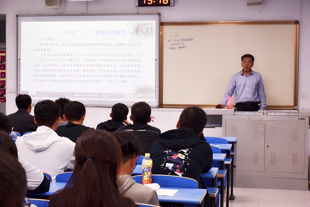 离退休工作处副处长刘其会为交通运输2021-3班学生宣讲习近平总书记“七一”重要讲话精神