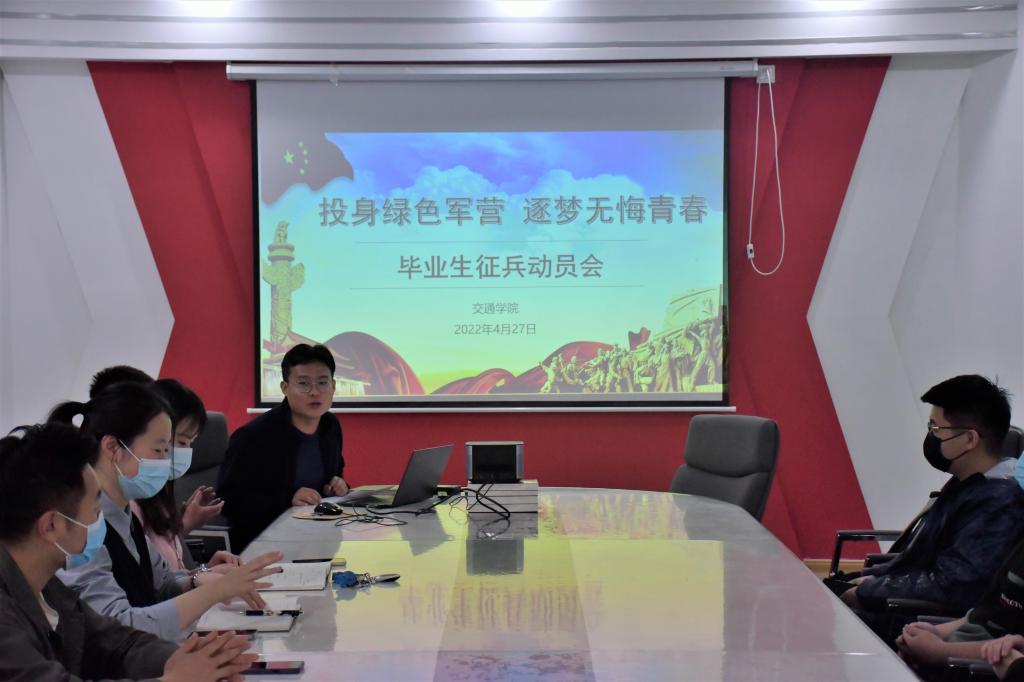 “国无防不立,民无兵不安”。为进一步加强入伍政策宣传,鼓励毕业生参军入伍,4月27日,必赢776net组织召开应届毕业生征兵动员会,学校国防教育科科长于喆、必赢776net辅导员董淑敏、武装部兼职辅导员闫应军、征兵宣讲团成员丁永涛参加会议,必赢776net辅导员任泳兆主持会议。