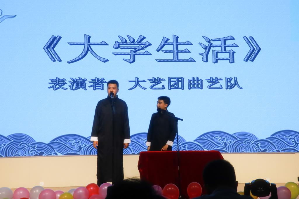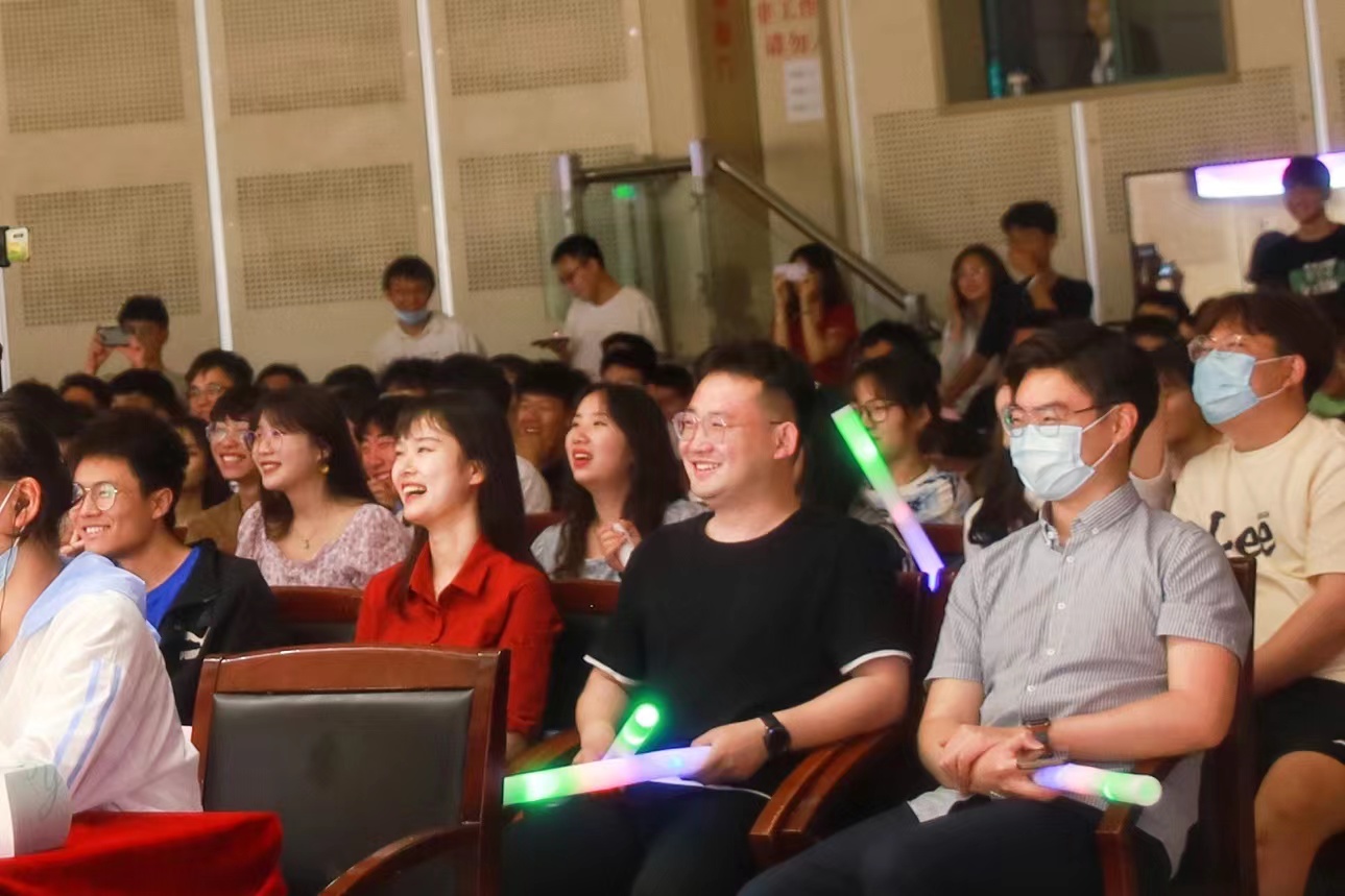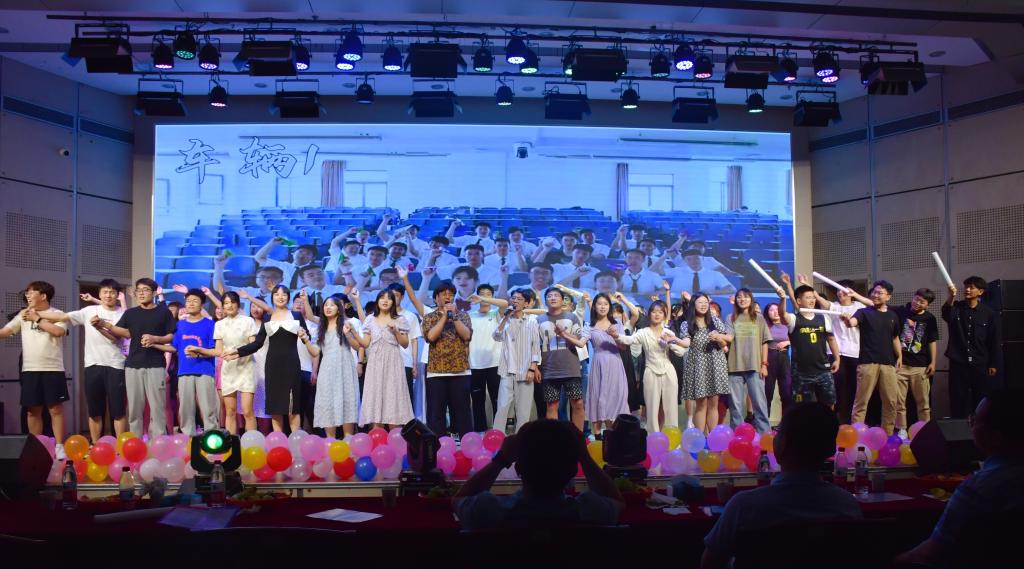 中场游戏《谁是卧底》结束后,舞蹈《River Tomboy》、歌曲《背对背拥抱》又一次将现场气氛推向高潮。大艺团曲艺团表演的相声《大学生活》以大学生的校园生活为主线,诙谐幽默地回忆了这些年青葱岁月的点点滴滴,引发了强烈共鸣。团委老师刘倩婧、董淑敏以彩蛋的形式惊喜亮相,共同演唱了歌曲《凤凰花开的路口》,流露出对毕业生浓浓的不舍之情,同学们挥舞着双手默契合唱,眼角泛起莹莹泪光。“祝全体2022届毕业生前程似锦,毕业快乐!”大家齐声高歌,相互拥抱,最终,晚会在歌曲串烧《不说再见》中落下帷幕。