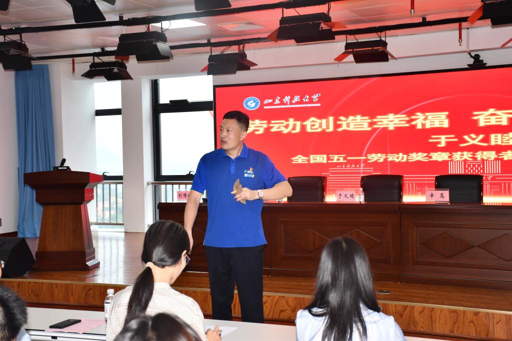 于义睦用质朴的语言、鲜活的事例分享了用实际行动践行“工匠精神”、“劳动精神”,在平凡的岗位上做出了不平凡的事情。“简单的事情,坚持去做,就是不简单的事情;平凡的事情,坚持去做,就是不平凡的事情。”于义睦激励广大师生,在平凡的岗位上敬业奉献,寻找人生价值,于平凡处创造伟大。