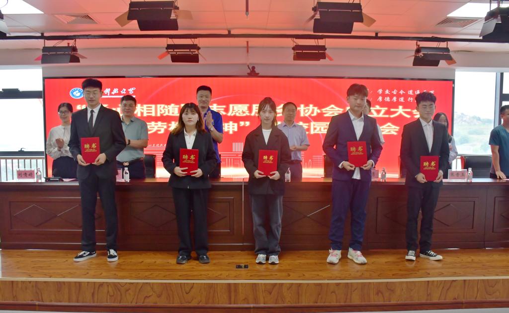 报告会前,学院举行了“通心相随”志愿服务协会成立大会,全国五一劳动奖章获得者、真情巴士集团驾驶员于义睦、校团委负责人、学院领导班子成员、全体教职工和学生志愿者代表参加会议。