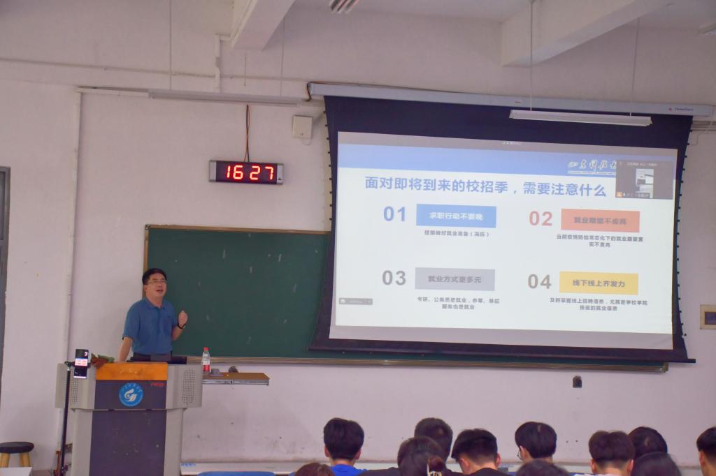 李勇以学院近三年就业数据分析作为切入点,全面介绍了毕业生入职单位性质分布、深造高校目录、考研上岸情况、考研动机调查情况以及重点院校招生情况,深入分析了学历就业率、专业就业率、目前就业市场形势、近五年研究生报考趋势,数学、政治、英语历年平均分等,引导毕业生们明确发展目标、清晰自身定位,树立正确的择业观、就业观。