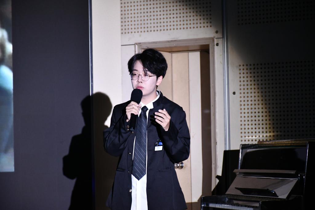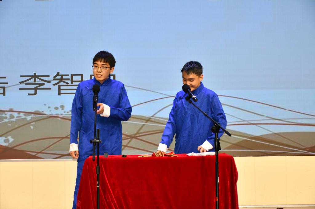 中场游戏环节“你画我猜”再次将全场气氛推向高潮。晚会第二环节——“经明行修,共赴韶华”。大艺团曲艺队带来的小品《最后一堂课》流露出毕业生对母校浓浓的不舍之情。张文馨等演唱的歌曲《问风》以深厚有力的唱功和虚实结合的唱法,将少年的意气风发展现的淋漓尽致。校大艺团主持朗诵队带来的朗诵《我真想,我祝福》为毕业生们送上了最真挚的祝福!