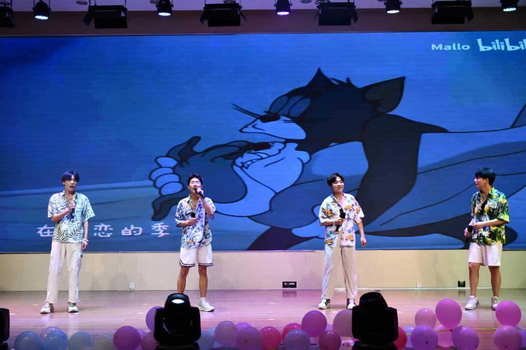 盛夏的六月承载了太多祝福与惦念,也寄托了太多的关怀与期望。晚会以一段短视频拉开序幕,视频展示了老师对毕业学子的殷切嘱托和学弟学妹们对学长学姐的真诚祝愿。晚会共分为两个环节,第一环节——“青衿之志,履践致远”,大艺团舞蹈队带来的开场舞《怦然心动》,以灵动的舞姿描绘青春的故事,展现青春的力量,以优雅与激情演绎了对梦想的追逐。歌曲《海芋恋》流淌着深情和温暖,带来了浪漫与感动。2023届毕业生孙超群深情演唱歌曲《你曾是少年》,唤起了毕业生内心深处最美好的记忆,四年的大学生活如电影片段般在脑海中一帧帧闪过,炙热的青春就这样留在了美丽的科大。唐利浩和李智奥带来的相声表演《学电台》,包袱不断,妙趣横生,现场观众喝彩连连。