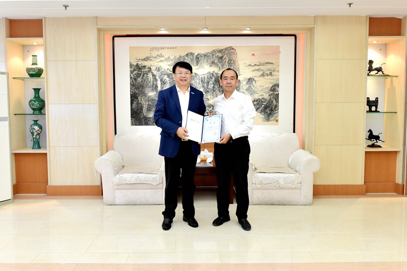 为增进校企交流与合作,推动智慧交通学科高质量发展,2023年10月18日下午,山东科技大学举行聘任仪式,聘任海信集团高级副总裁陈维强为我校特聘教授。山东科技大学校长曾庆田为陈维强教授颁发聘书。