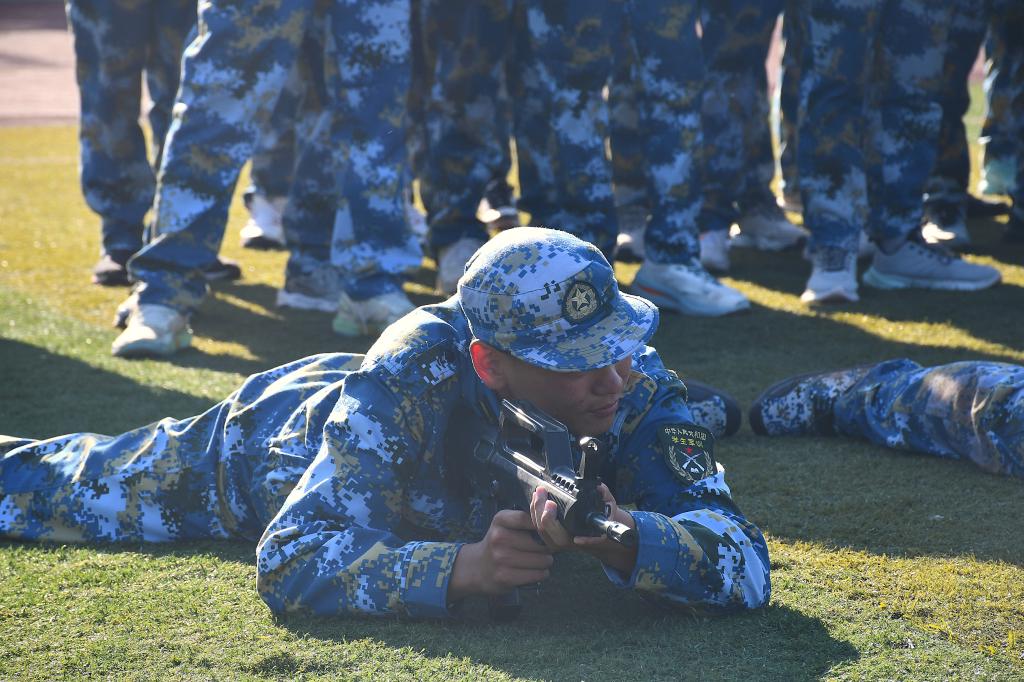 从基础的稍息、立正到整齐的跨步,学生们的动作规范统一,行进时步伐稳健有力,口号声震撼人心。经过一周的严格训练,学生们身姿挺拔,展现出坚韧不拔的精神风貌。他们已能熟练展示卧倒、匍匐、突进等战术动作,并深入学习了包扎、心肺复苏等应急救援技能,对军规军纪有了更深刻的理解和体会。汗水洒满操场,呐喊声此起彼伏,不仅见证了学生们身体素质的提升,也彰显了他们集体意志的凝聚与升华,共同谱写了青春与成长的赞歌。