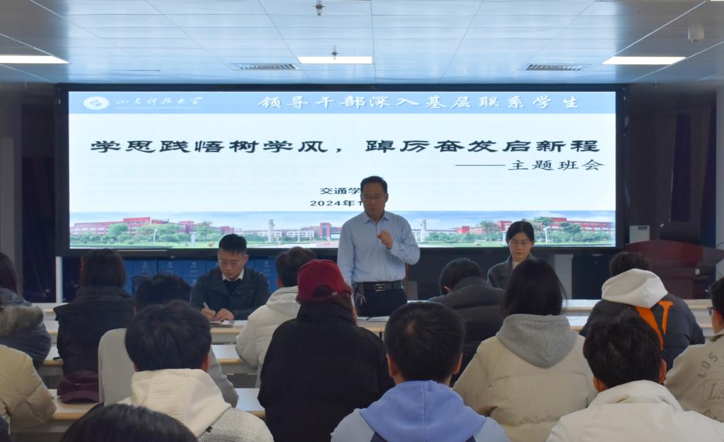 为贯彻落实领导干部深入基层联系学生制度,推进学院的学风建设,12月6日,必赢776net院长辛嵩走进交通运输2024级2班,召开“学思践悟树学风,踔厉奋发启新程”主题班会,必赢776net学生工作办公室主任刘倩婧、2024级新生辅导员任泳兆参加会议。